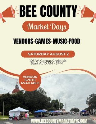 Bee County Market Days is a vibrant monthly event held on the first Saturday of every month in the heart of our community. It’s the perfect opportunity to support local small business vendors who bring a wide variety of handcrafted goods, unique gifts, homemade treats, and creative products to share. Whether you’re looking for fresh produce, artisan crafts, boutique items, or one-of-a-kind finds, Market Days is your go-to destination for shopping local and connecting with passionate entrepreneurs from our area.