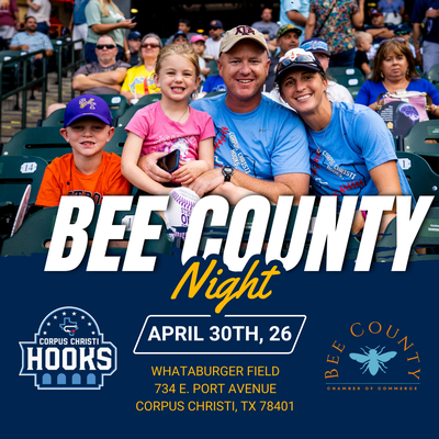 Join us for an unforgettable evening at Bee County Night on April 30, 2026, at Whataburger Field in Corpus Christi as the Corpus Christi Hooks take the field! This exciting community event brings together families, friends, and local organizations for a fun-filled night of baseball, community pride, and hometown spirit. First pitch is at 6:35 PM, and attendees are encouraged to show their Bee County pride by wearing their school or team colors while cheering on the Hooks.