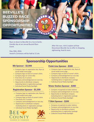 Get ready to lace up and join the excitement at Beeville’s Buzzed Race, hosted by the Bee County Chamber of Commerce! Taking place on Saturday, May 30, 2026, at Coastal Bend Distilling Co. This fun and energetic event offers something for everyone, including a 5K, 10K, and Kids Dash. Whether you're a seasoned runner or just looking for a great way to enjoy the community, participants of all ages and skill levels are invited to be part of this buzzing good time.