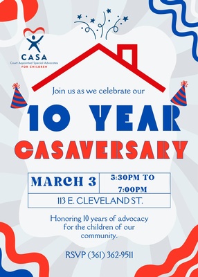 Join the Bee County Chamber of Commerce as we celebrate 10 years of advocacy for the children of our community with CASA of Bee, Live Oak, McMullen, and San Patricio Counties.